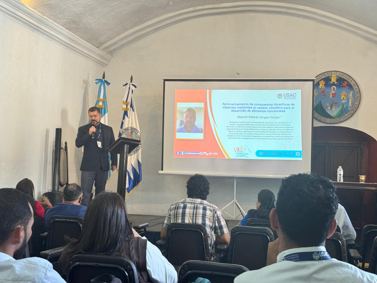 - Maynor Vargas Vargas, del Sistema de Gestión de Laboratorios de Investigación (SIGELI) de la Vicerrectoría de Investigación y Transferencia (VIT), con la ponencia: “Aprovechamiento de los compuestos bioactivos de especies resilientes al cambio climático para el desarrollo de alimentos funcionales”.