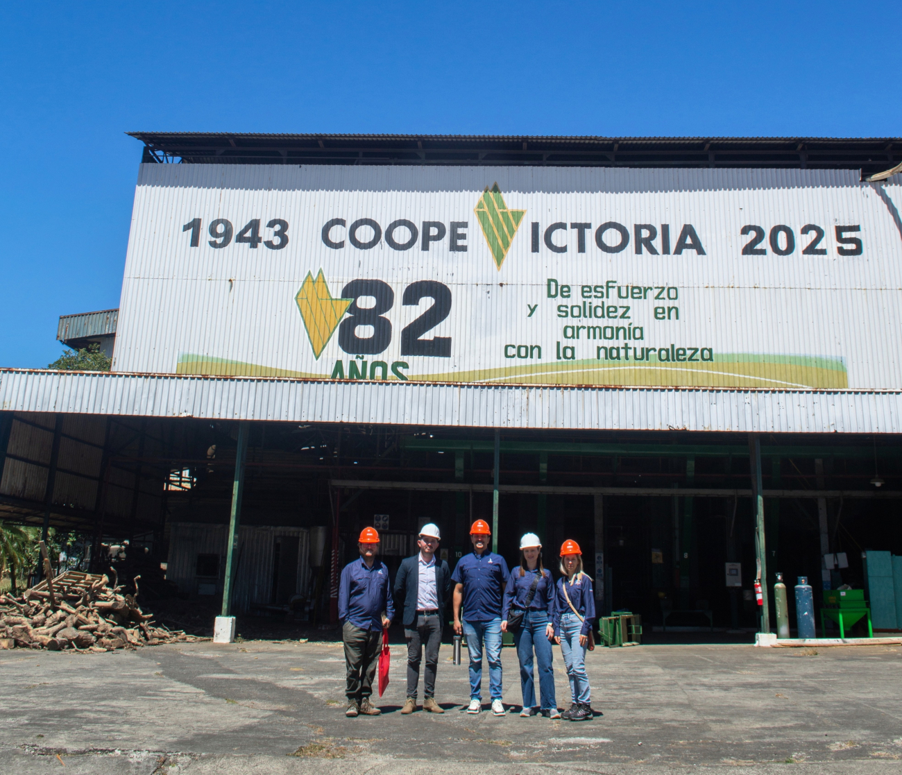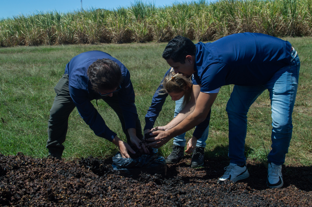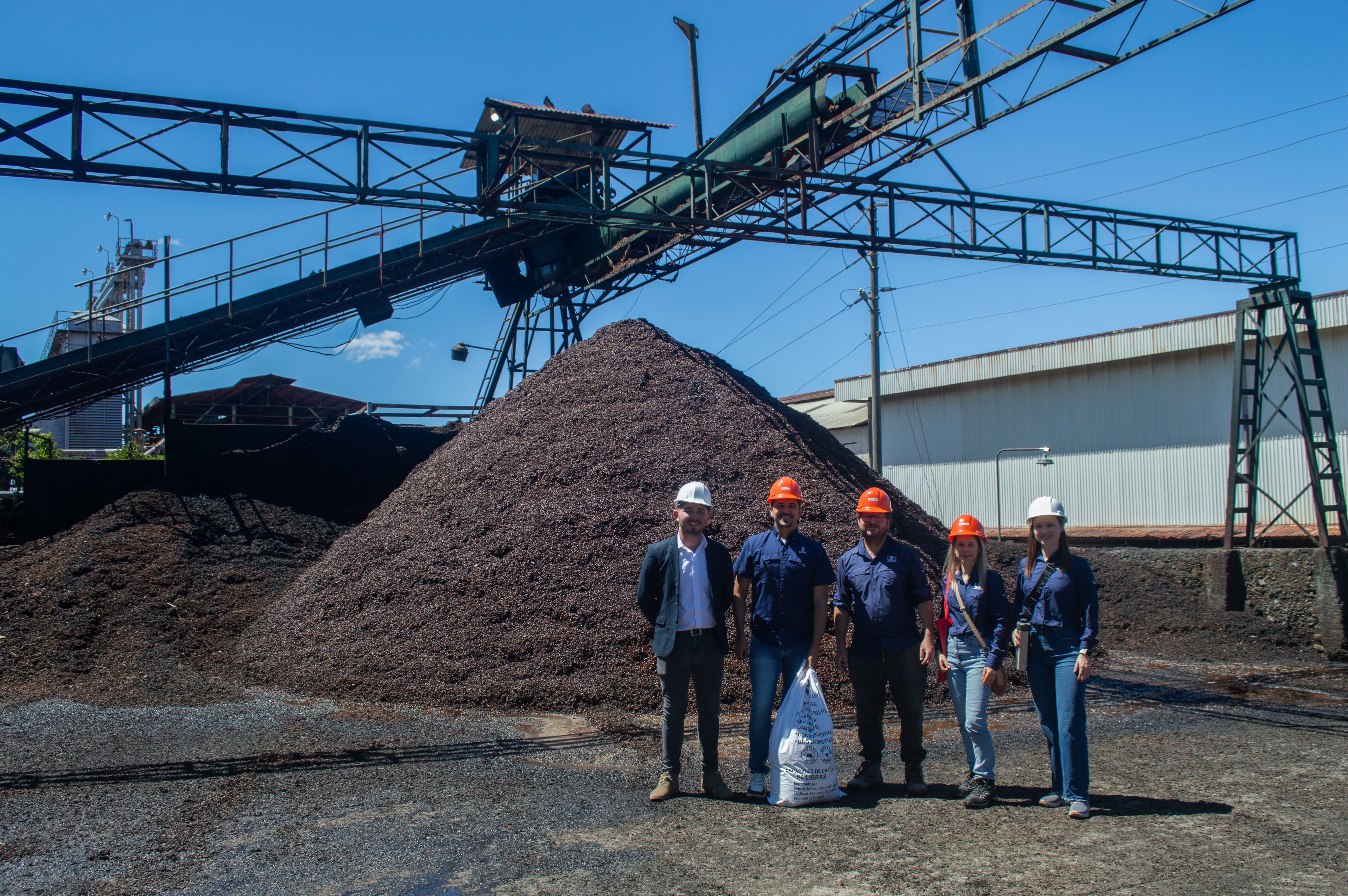 La gira continuó en CoopeVictoria, en Grecia de Alajuela, referente nacional del sector agroindustrial. En este espacio, se realizó recolección de cáscara de café y bagazo de caña de azúcar, subproductos que se generan en grandes volúmenes como resultado de los procesos agroindustriales, y que serán utilizados como materia prima para la producción de nanofertilizantes, se fortaleció el intercambio de conocimiento en torno a la sostenibilidad y aprovechamiento de subproductos, aspectos clave para generar soluciones basadas en ciencia.