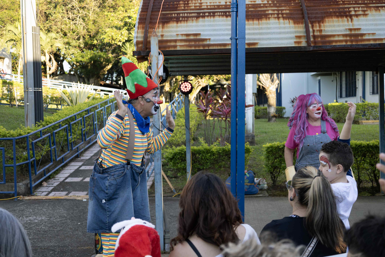 Posteriormente, el Programa Ágape enriqueció la tarde con una muestra artística llena de identidad y tradición. El Grupo de Folclore Grano de Oro ofreció una presentación cargada de cultura y raíces costarricenses; además, la alegre participación de la cimarrona realizó un dinámico recorrido por el campus, invitando a las personas asistentes a sumarse a la fiesta navideña y llenando los pasillos de música, color y energía.