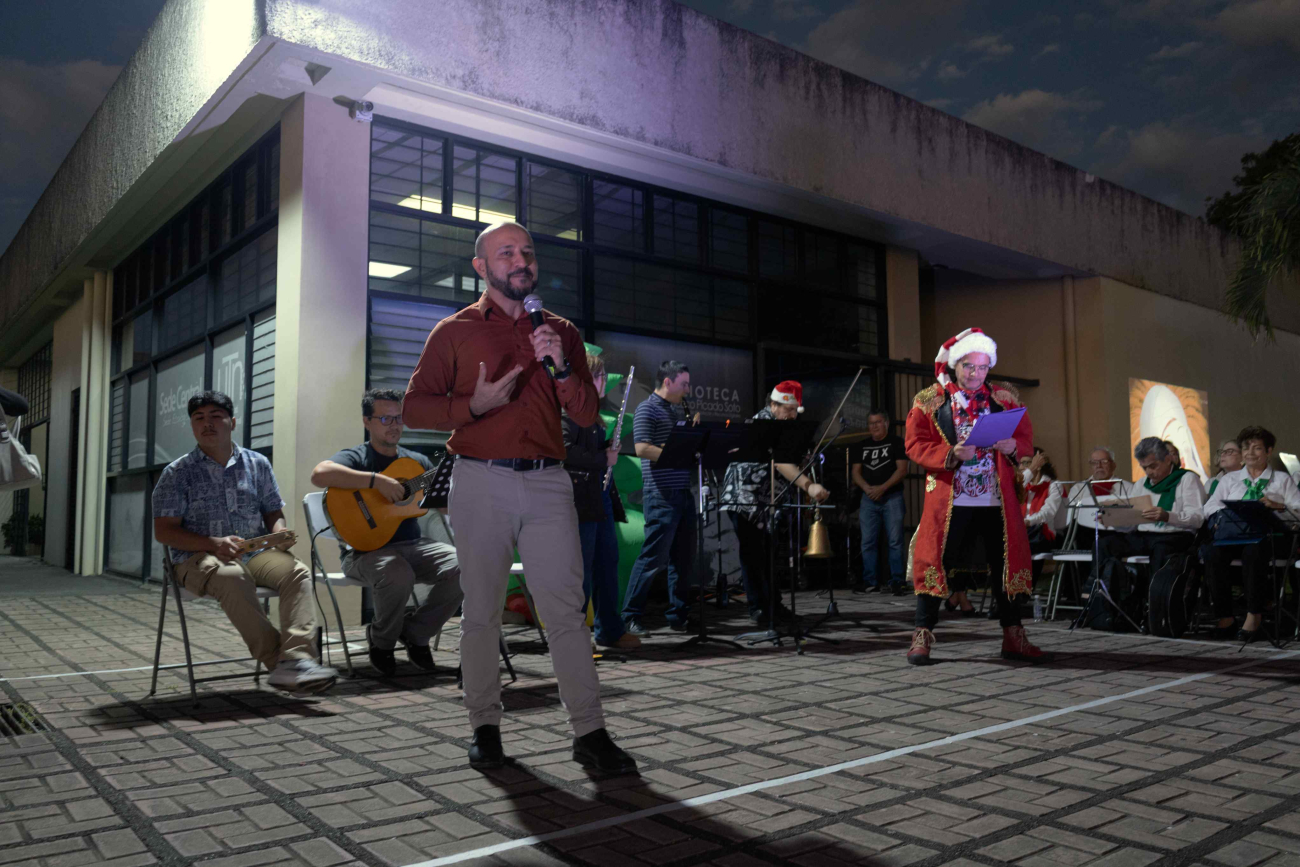 La música se convirtió en el lenguaje que unió corazones cuando el Grupo Fusión UTN tomó el escenario. La agrupación, integrada por Ariel Solano en la guitarra; Sergio Quesada Espinoza en el clarinete; Sergio Cubero Mata en el violín; Susan Escobar Castillo en la flauta traversa; y Gabriel Carsorla González en la percusión, ofreció una presentación armoniosa y llena de sensibilidad. Asimismo, el Programa Ágape presentó al Coro Divina Ilusión, dirigido por Leslie Alvarado Durán, que deleitó al público con un repertorio navideño que fortaleció el ambiente de celebración y espiritualidad.