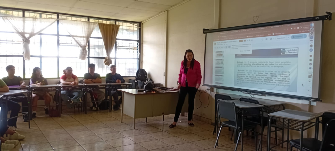 Durante el mes de noviembre de 2025, la carrera de Contabilidad y Finanzas Contaduría Pública de la Sede Central de la Universidad Técnica Nacional desarrolló un ciclo de capacitaciones dirigido a personas estudiantes, con el propósito de fortalecer el conocimiento sobre normativa institucional, disciplina universitaria, accesibilidad y prevención de la violencia de género. Las actividades formativas se desarrollaron en tres sesiones independientes, los días 12, 24 y 26 noviembre 2025, impartidas por los docentes Nancy Álvarez Benavides y Jonathan Morales Herrera, promovidas por el Director de carrera Henry Alvarado Chavarría.