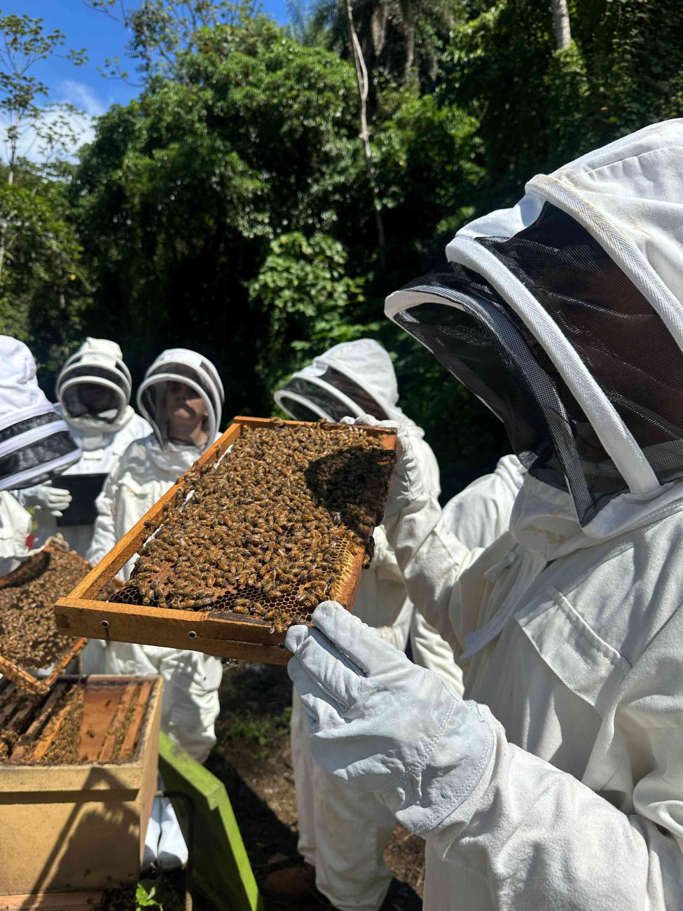 Esta experiencia permitió consolidar los conocimientos adquiridos y generar confianza en el manejo directo de las colmenas.
