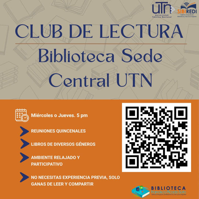 El Club de Lectura está dirigido a estudiantes, personal docente y administrativo y posibles usuarios externos de la Universidad Técnica Nacional, para lo cual, se utilizan obras digitales, obras físicas y textos digitalizados.