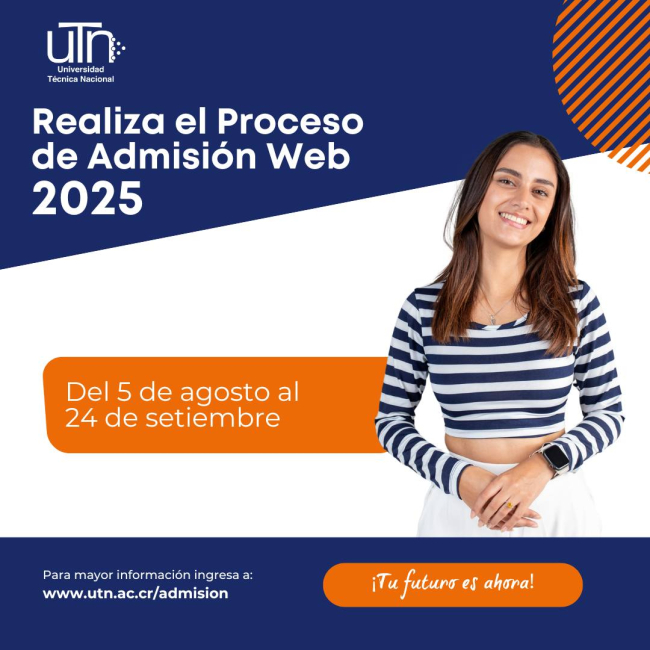 Las personas interesadas y realizar su proceso de admisión tienen tiempo hasta el próximo martes 24 de setiembre para completar su solicitud, en el siguiente enlace www.utn.ac.cr/admisión