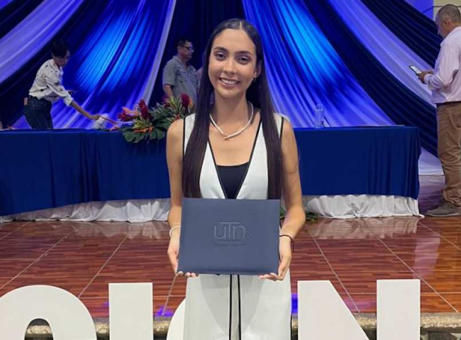 Yoilin María Badilla Sequeira, estudiante de la Sede de Guanacaste, forma parte de la primera generación de graduados del Diplomado en Manejo de Recursos Energéticos, que recibieron su título en el mes de agosto.