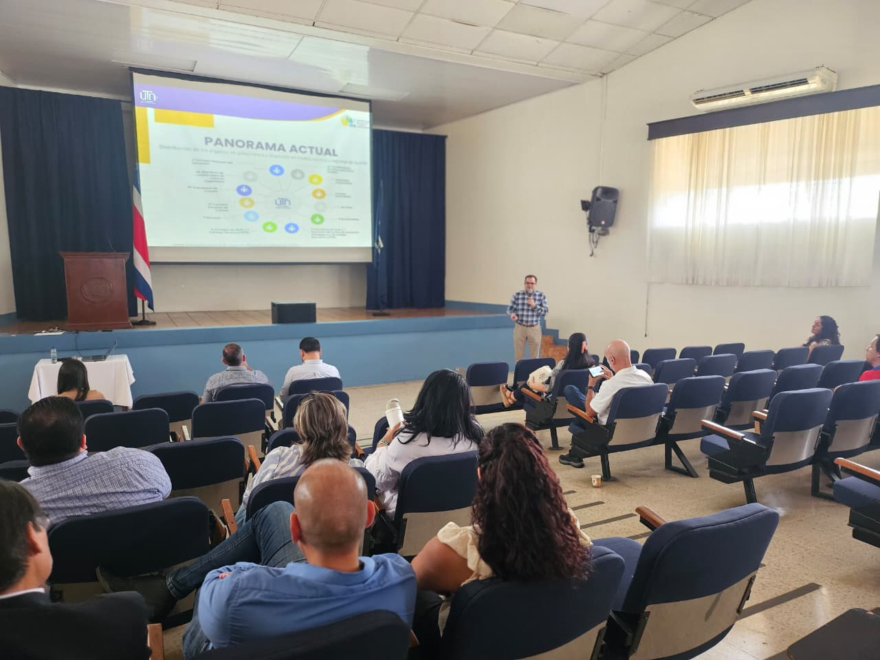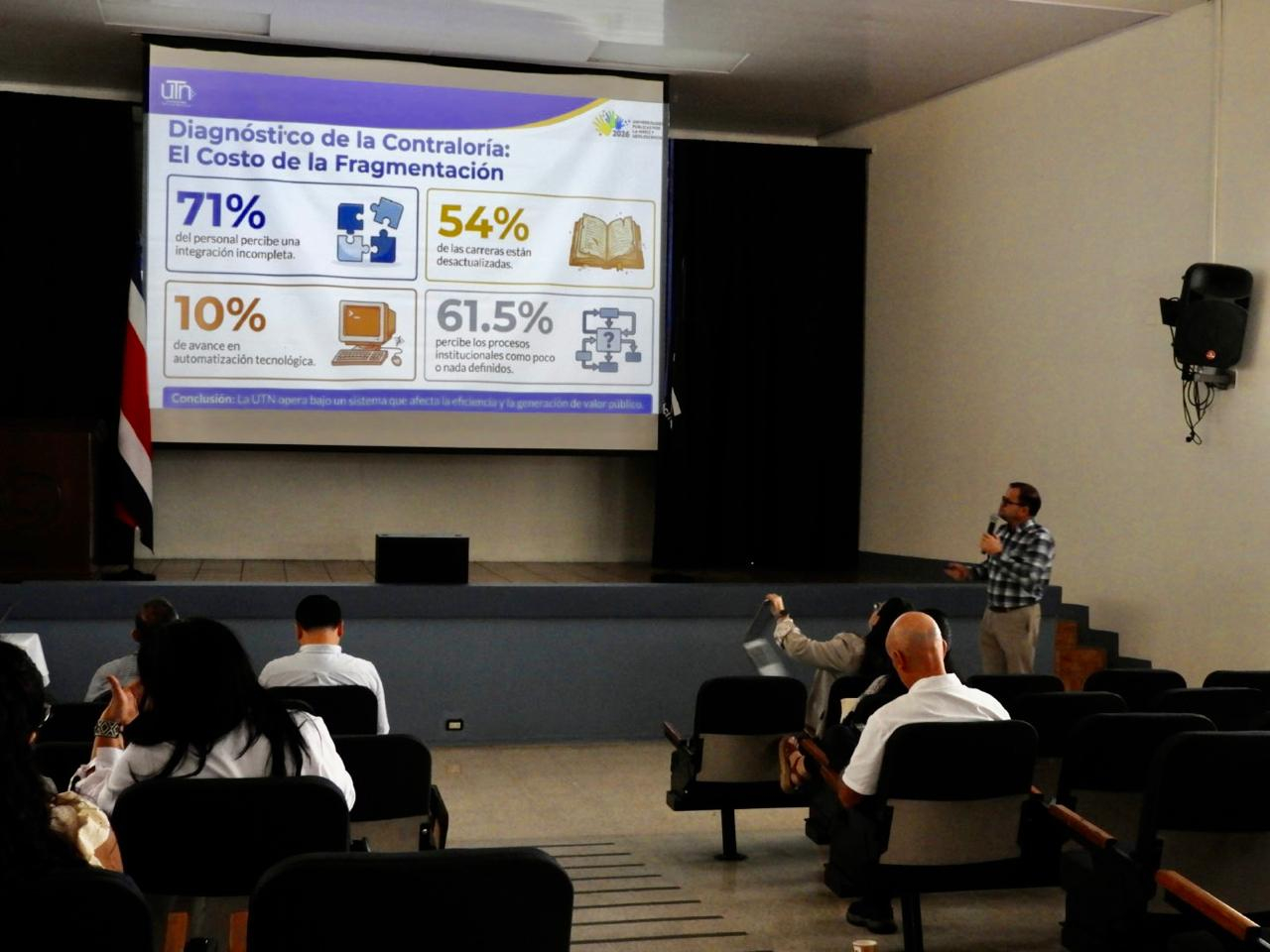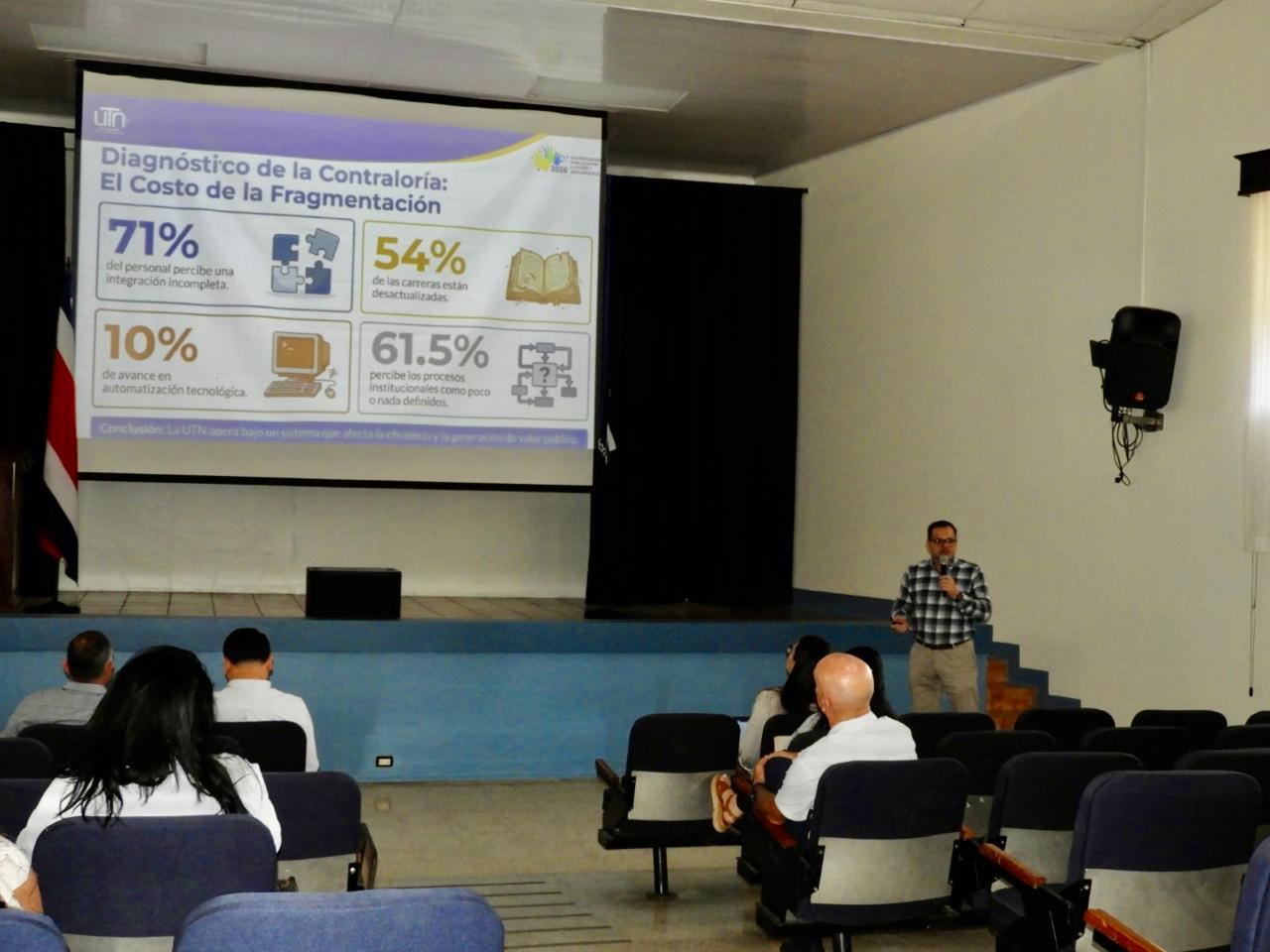 El señor William Rojas, rector de la UTN, junto con su equipo de gestión, presentó el nuevo modelo de administración orientado a una transformación digital y a la reorganización institucional basada en la gestión por procesos. Este enfoque contempla un plan institucional de inversión y un portafolio de proyectos dirigidos a fortalecer la eficiencia, la desburocratización administrativa, la seguridad institucional y la gestión de riesgos. Como parte de esta ruta de fortalecimiento, se avanza en la consolidación de una estructura organizativa integral, la optimización de los procesos y la planificación tecnológica, garantizando una administración moderna, eficiente y orientada a resultados.