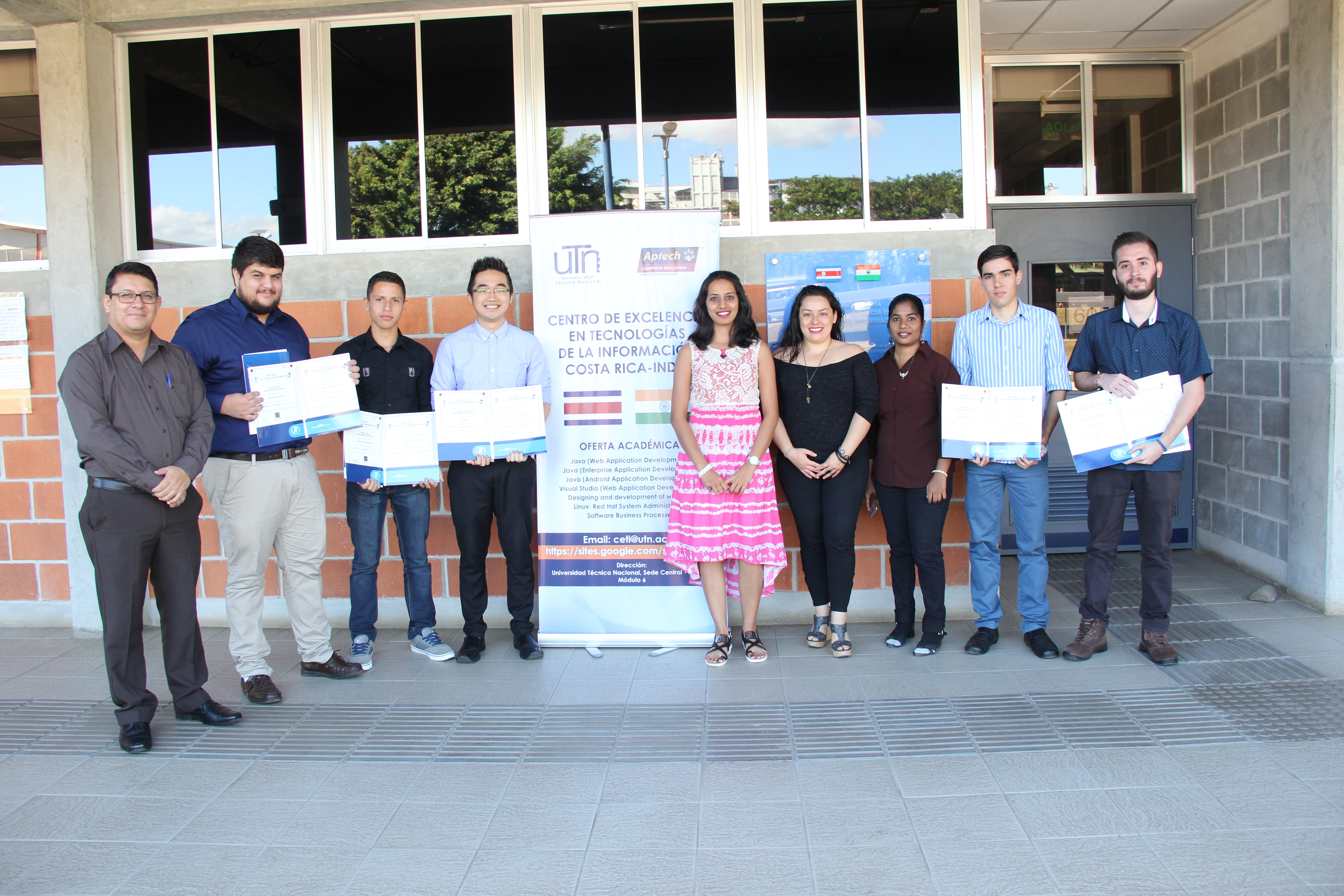 Ambas capacitaciones suman 88 y 92 horas respectivamente, que al final se aprueban con un examen realizado en línea con la empresa Aptech, encargada de impartir las capacitaciones. A cada participante se le otorgó un título internacional que los acredita como Aptech Certified Mobile Application Developer (Android) y Aptech Certified .NET Web Application Developer, también avalado por la UTN y el Ministerio de Ciencia y Tecnología de Costa Rica.