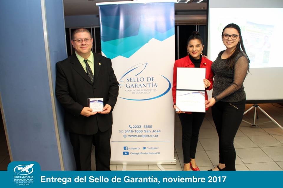El Colegio de Periodistas de Costa Rica otorgó el martes 28 de noviembre el Sello de Garantía a la Radio Revista Somos UTN, mediante el cual certifica que dicho medio cumple con las normas de calidad informativa que establece dicho colegio.