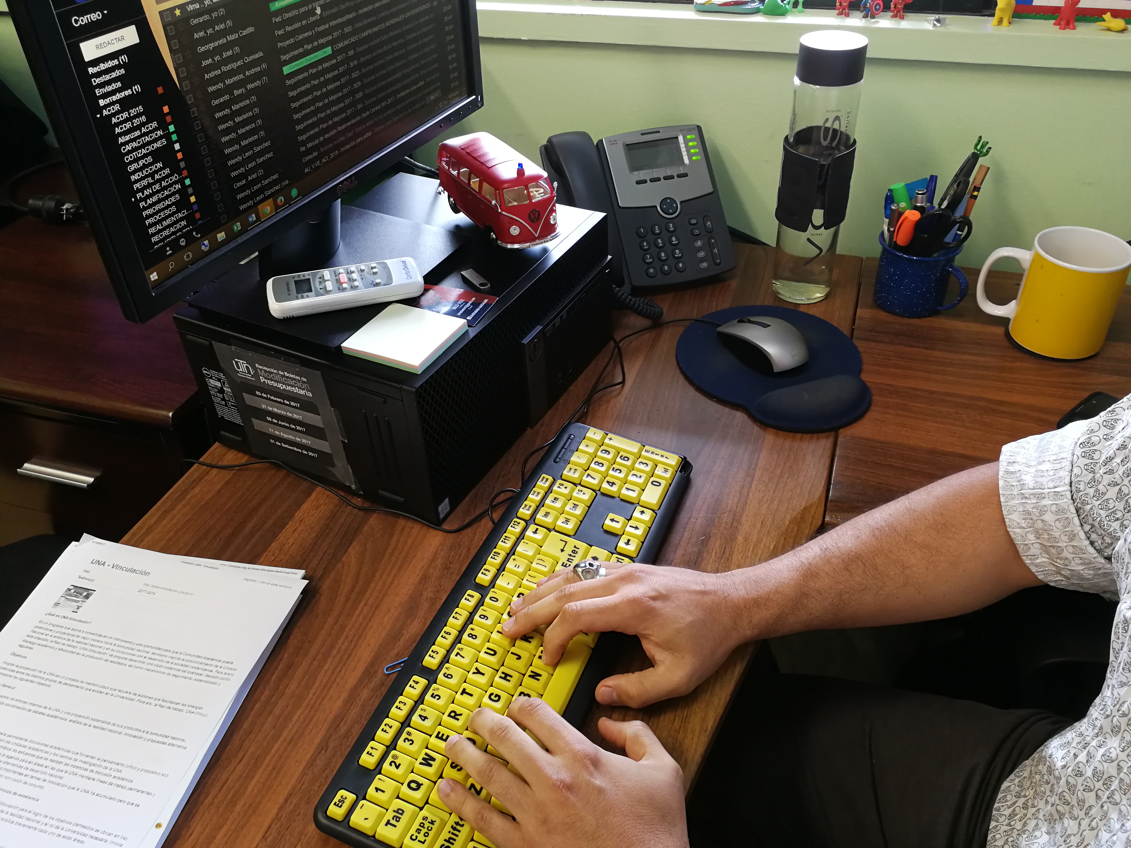 Teclados de computadora con teclas grandes de color amarillo, lupas de lectura de tamaño carta y lámparas portátiles con diferente color e intensidad de luz,son las herramientas que los estudiantes o funcionarios con discapacidad visual tendrán a su disposición para sus labores cotidianas.