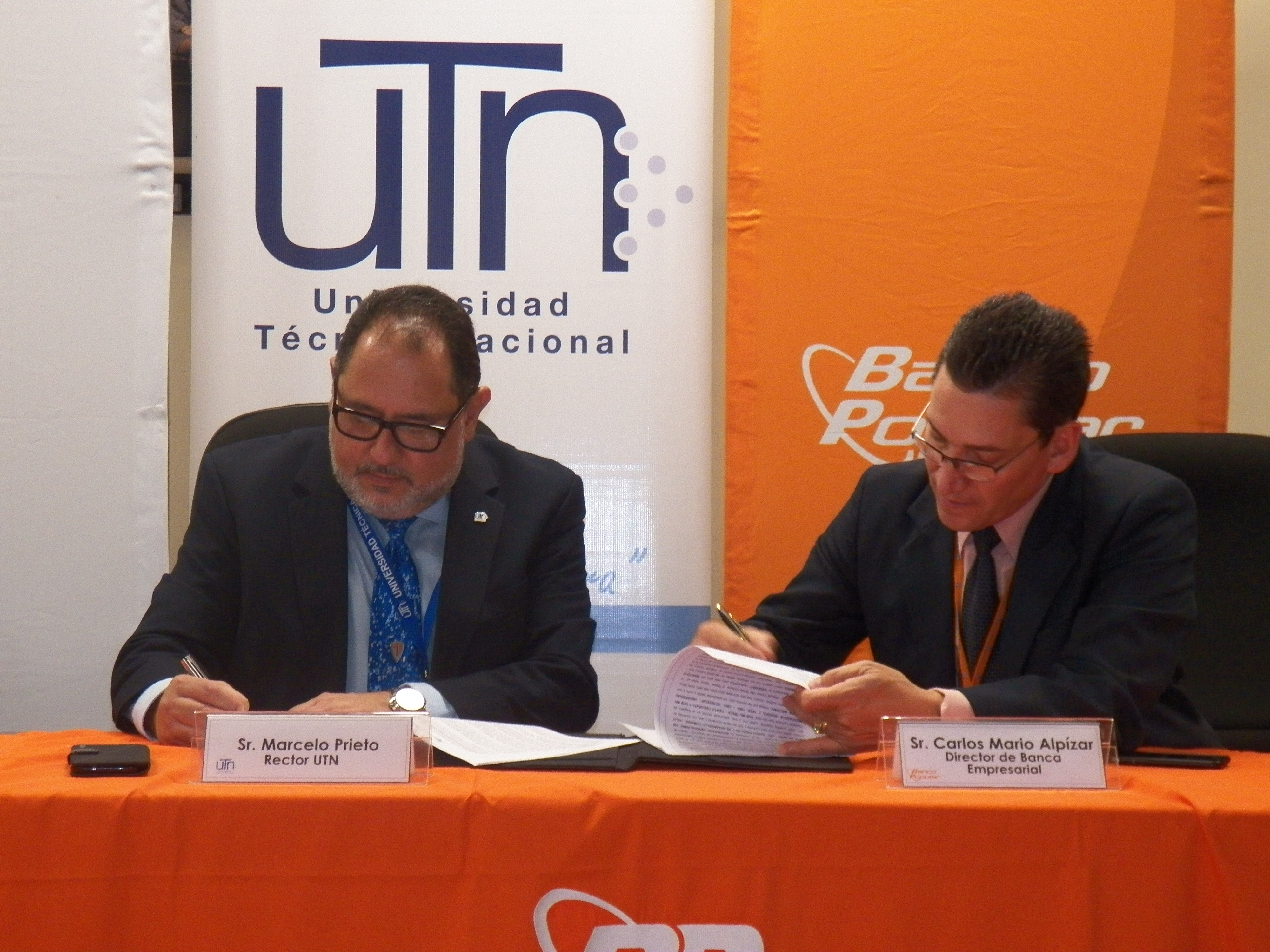 El jueves 11 de mayo la Universidad Técnica Nacional (UTN) y el Banco Popular suscribieron un contrato de crédito por la suma de ¢4 mil millones con el fin de financiar obras de infraestructura en la Sede Central y en la Sede de San Carlos.