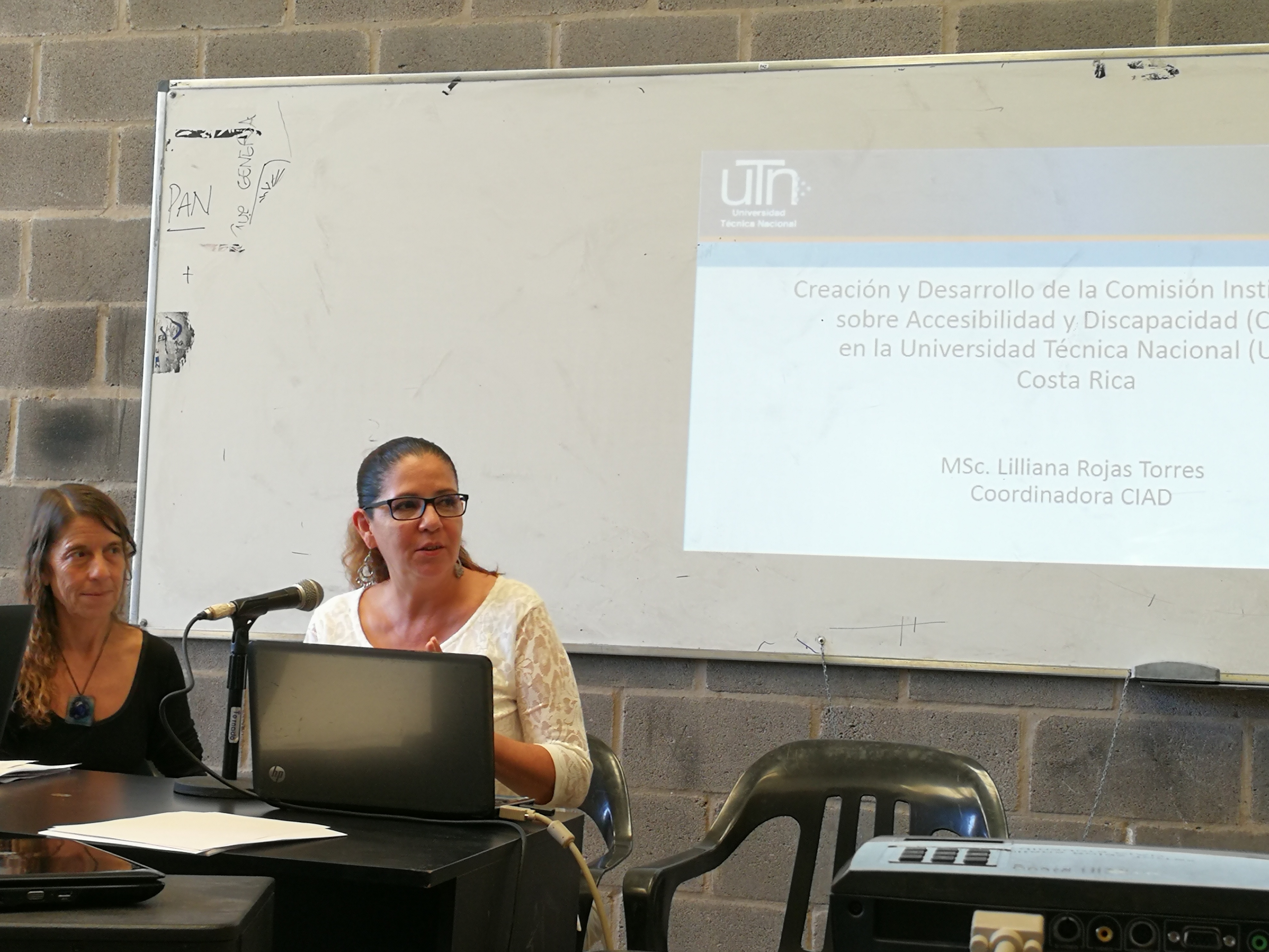 La MSc. Lilliana Rojas Torres, coordinadora del Área de Bienestar Estudiantil y de la Comisión Institucional sobre Accesibilidad y Discapacidad (CIAD) fue invitada junto a todas las integrantes de la Comisión Interuniversitaria de Accesibilidad a la Educación Superior (CIAES) del Consejo Nacional de Rectores (CONARE), donde la Señora Rojas representó a la UTN con la ponencia “Creación y Desarrollo de la Comisión Institucional sobre Accesibilidad y Discapacidad (CIAD)”.