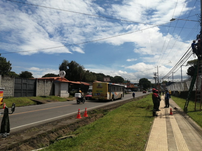 El viernes 27 de junio, el Instituto Costarricense de Electricidad (ICE) realizó la reubicación de los postes de alumbrado y líneas eléctricas ubicados frente a la Sede Central de la Universidad Técnica Nacional (UTN), en Villa Bonita de Alajuela. Esta intervención marca el inicio de un proyecto ampliamente anhelado por la comunidad universitaria y los vecinos del sector: la construcción de un sistema de canalización de aguas pluviales y la habilitación de bahías para autobuses frente al campus.