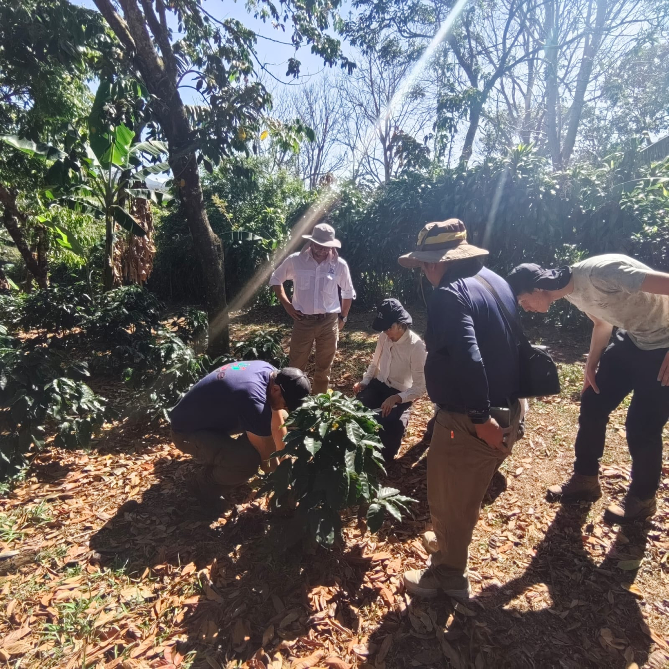 Durante el encuentro fueron recibidos por el señor José Mario Víquez, administrador de la finca, quien expresó su total disposición para desarrollar proyectos de investigación de manera conjunta, asimismo, se realizó un recorrido por la propiedad, que permitió conocer las prácticas agroforestales que implementan, donde la riqueza del suelo y la integración de diversas variedades favorecen la producción de un café más sano y resiliente, creando un ecosistema dinámico y equilibrado.