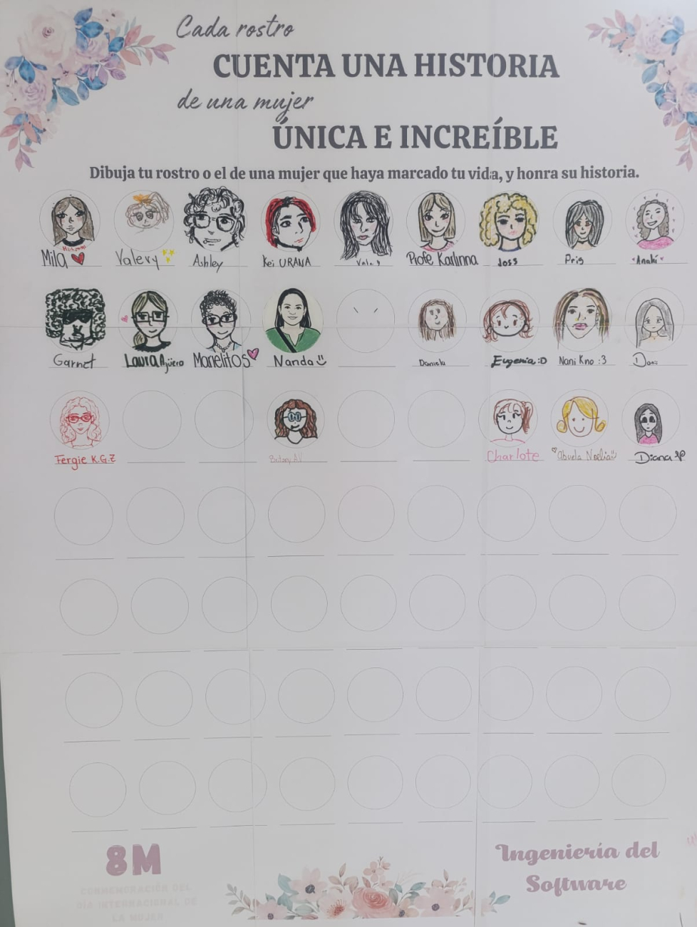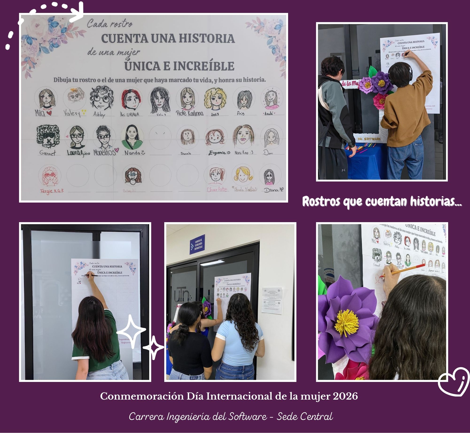 Entre las actividades se realizó una sesión fotográfica conmemorativa, desarrollada durante toda la semana con un marco alusivo al 8 de marzo, en la que participaron miembros de la comunidad universitaria en diferentes espacios del campus. Asimismo, se llevó a cabo el conversatorio virtual “El papel de la mujer en las ingenierías: desafíos y proyecciones”, un espacio de diálogo que permitió reflexionar sobre la participación, los retos y el impacto de las mujeres en las áreas de ingeniería. A esto se sumó el mural “Cada rostro cuenta la historia de una mujer única e invencible”, una propuesta artística que invitó a reconocer, desde la sensibilidad y la expresión visual, la diversidad de historias y experiencias que enriquecen a la sociedad.